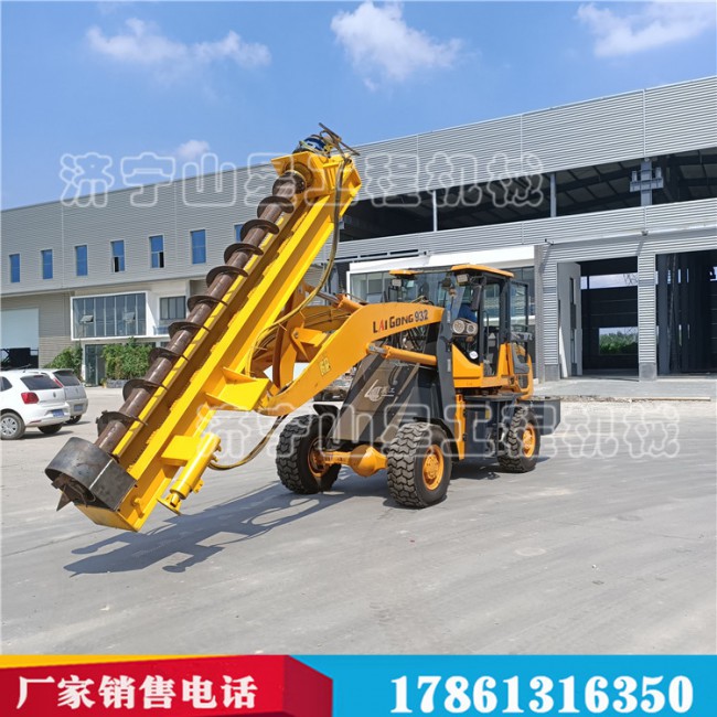 四驅越野鏟車式地基打樁機 鏟車改裝電線桿螺旋鑽孔機